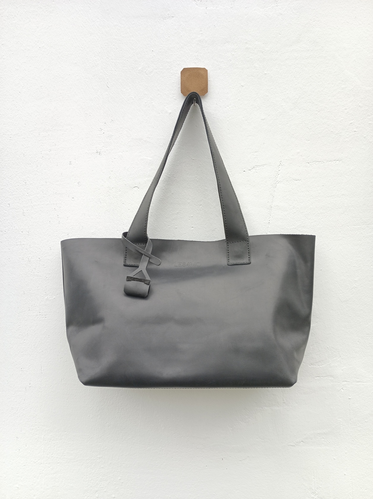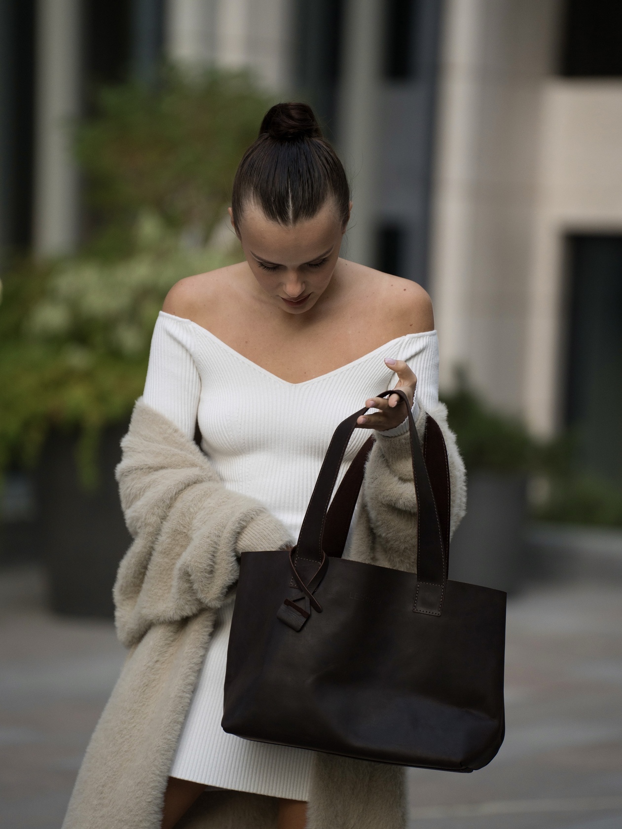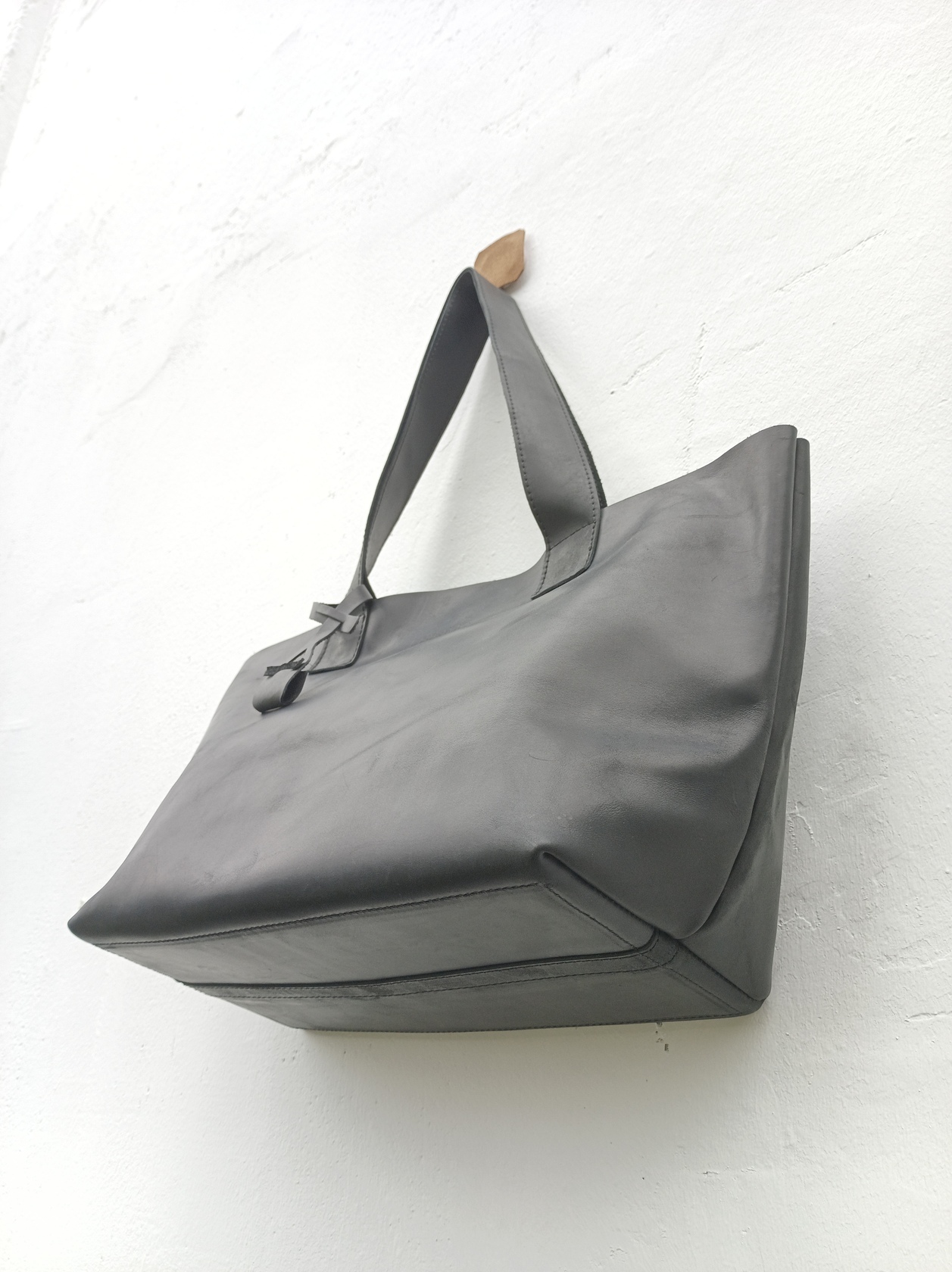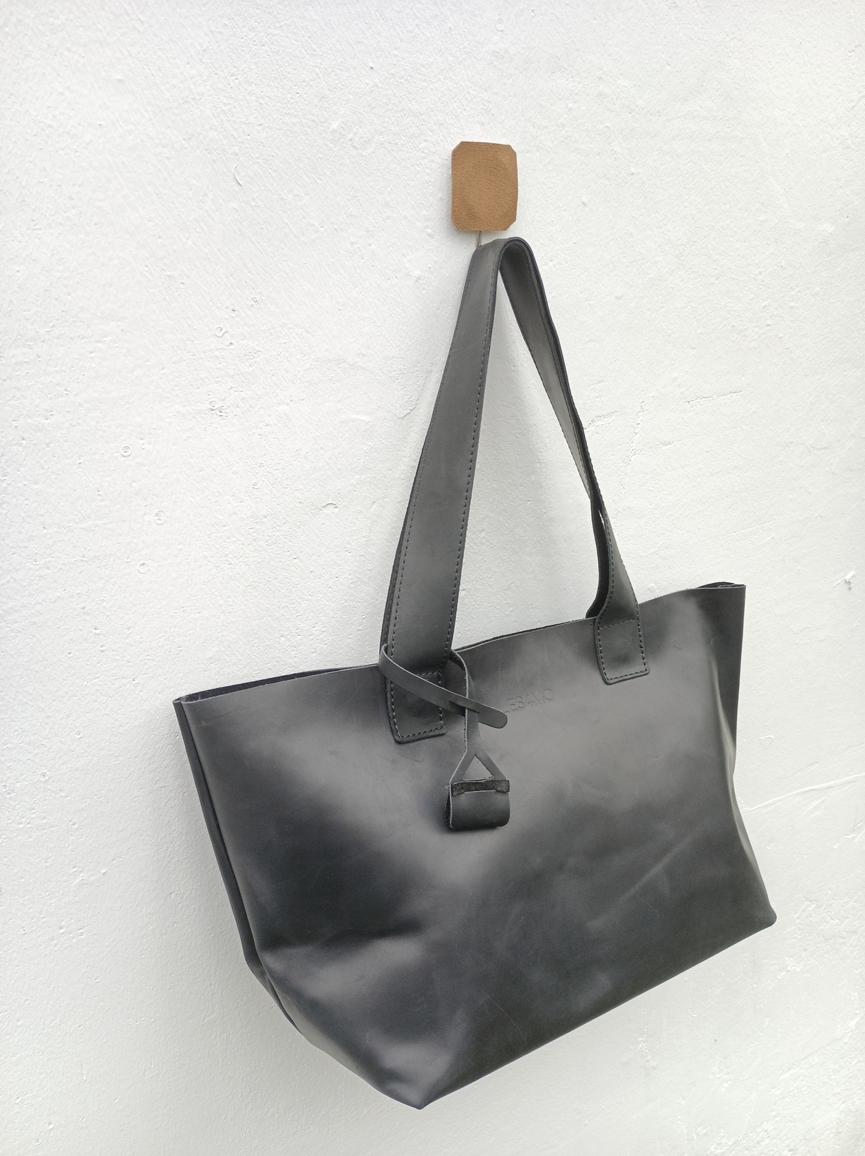 Минималистичная компактная кожаная сумка шоппер через плечо.