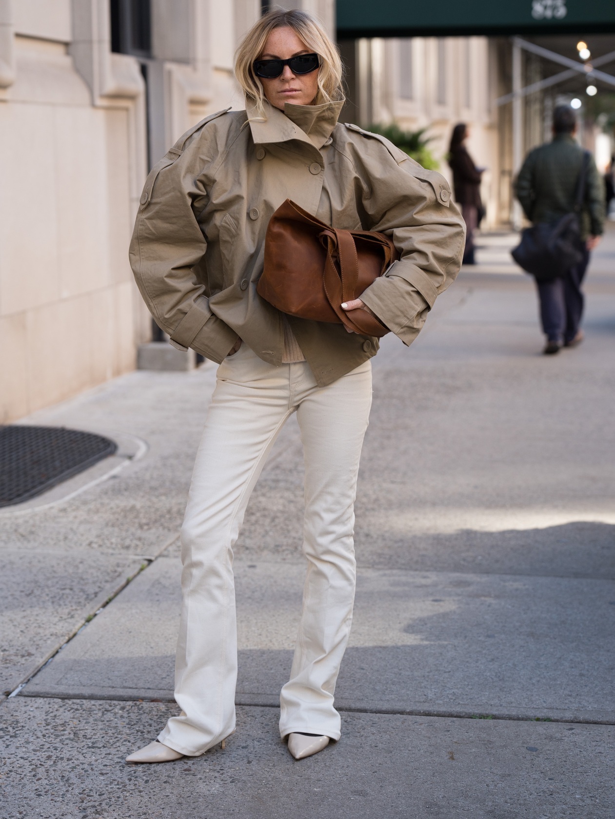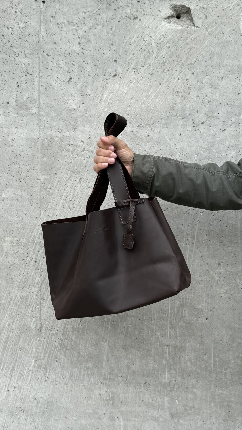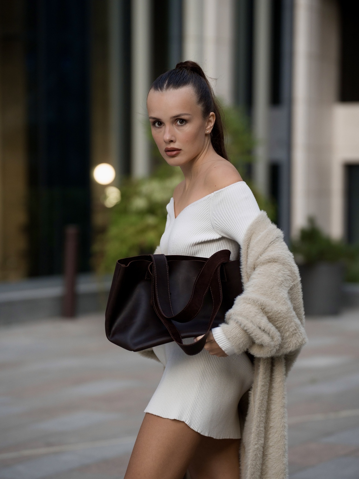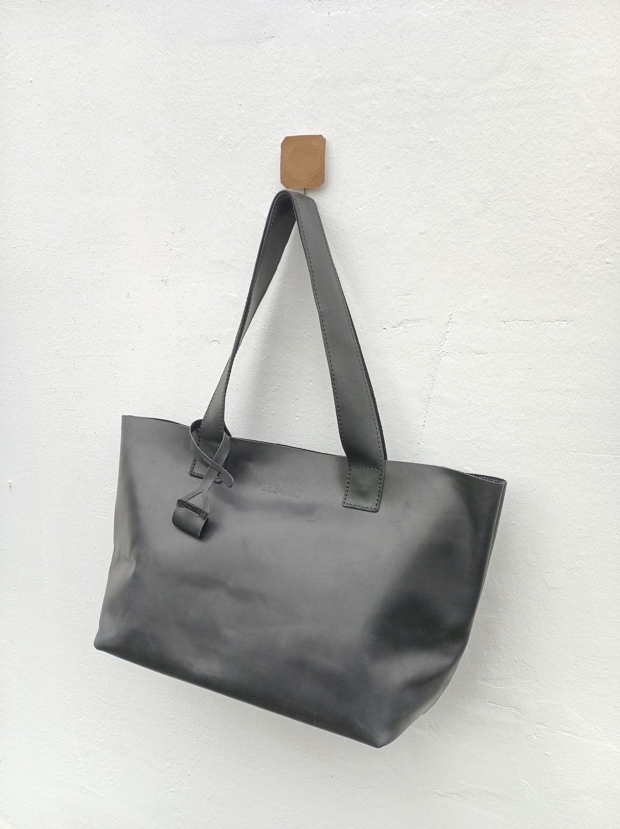 Минималистичная компактная кожаная сумка шоппер через плечо.